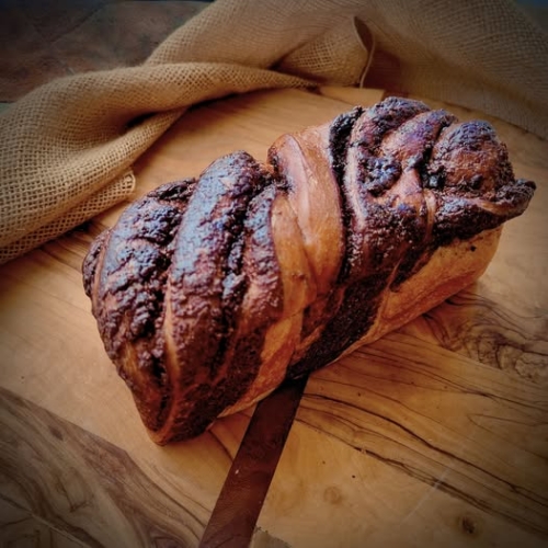 ![]() | Grande Babka ronde praliné Brioche végétalienne torsadée et garnie d'un délicieux praliné Amande noix cacao fait maison En savoir plus pour 6-8 parts environs | 550 g | 12.00 € la pièce |