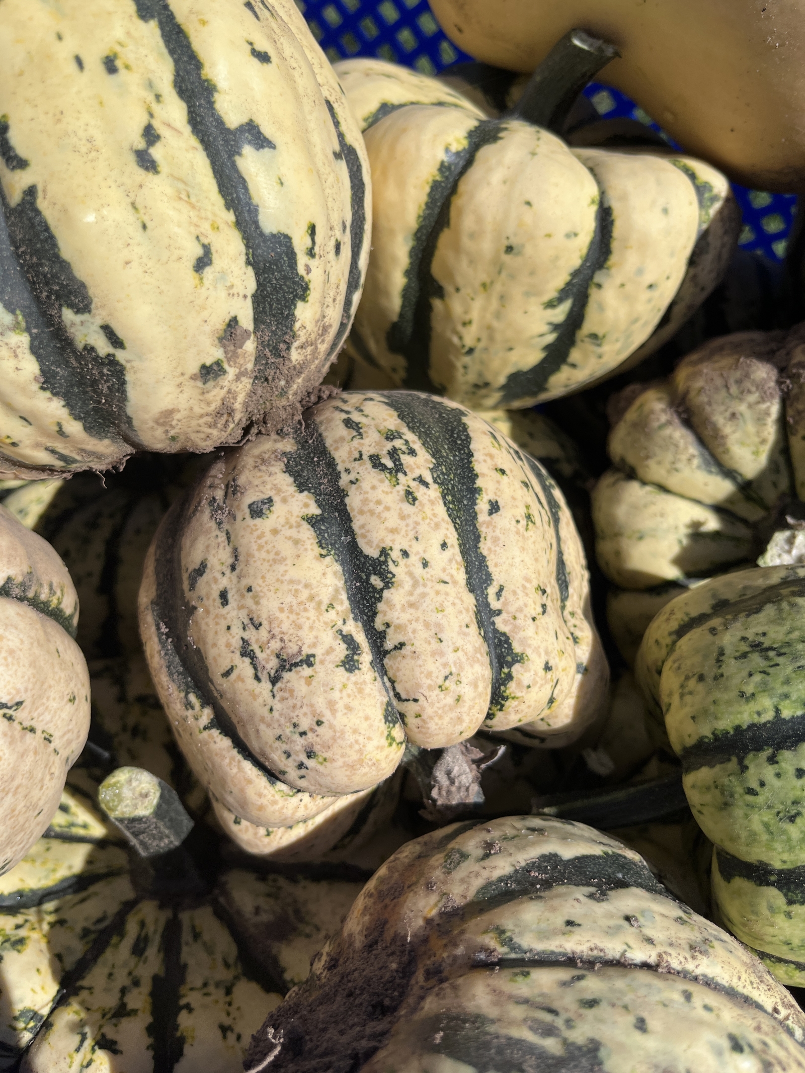 ![]()  | Courge vert olive  Courge Verte Olive – Élégante et savoureuse En savoir plus Avec sa belle peau vert profond et sa forme élancée, la courge verte olive révèle une chair douce, fine et parfumée. Délicieuse en gratin, en velouté ou simplement rôtie, elle apporte une touche gourmande et colorée à vos plats d’automne.  | 3.00 € le kg  |