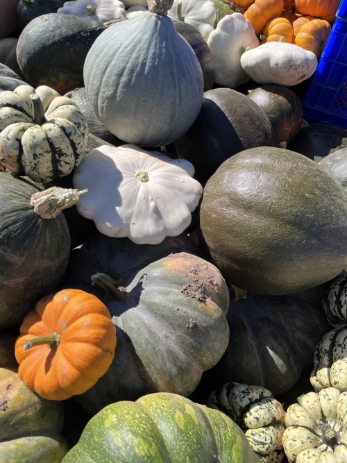 ![]()  | Courge "Blue ballet"  Blue Ballet En savoir plus Fruits gris-vert. Chair ferme jaune-orange particulièrement savoureuse au goût prononcé de châtaigne.  | 2.90 € le kg  | |