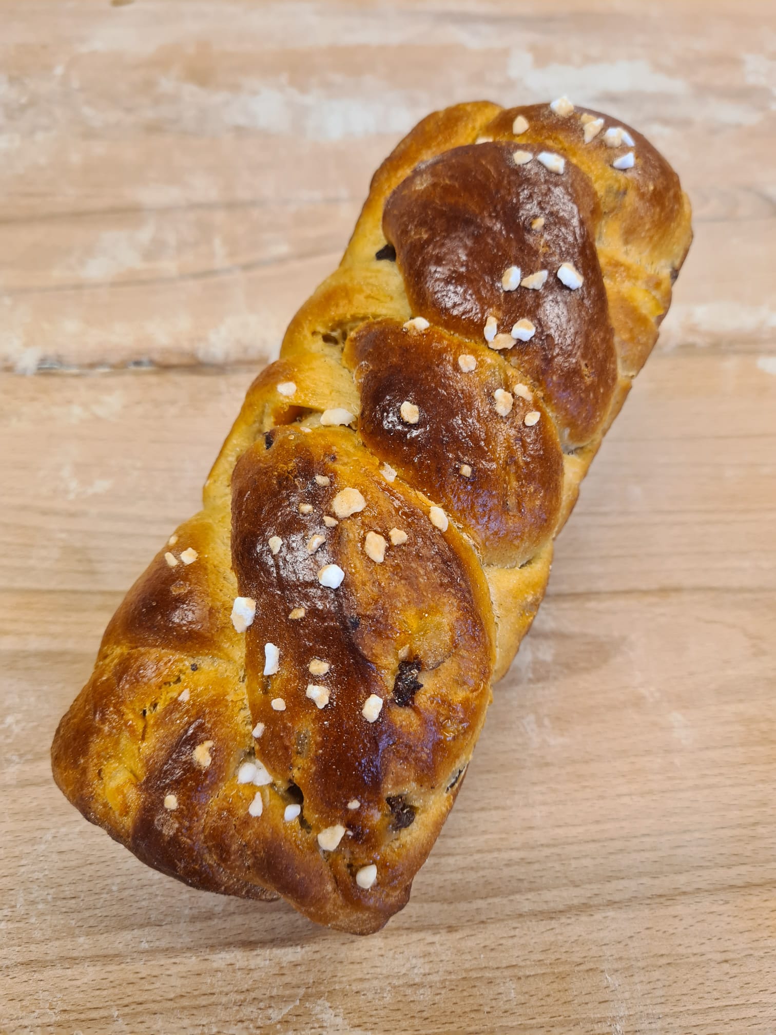 | Brioche des Fêtes Brioche au levain ultra-gourmande, agrémentée d'écorces d'oranges et de citrons confites et de raisins secs | 400 g | 8.00 € la pièce |
