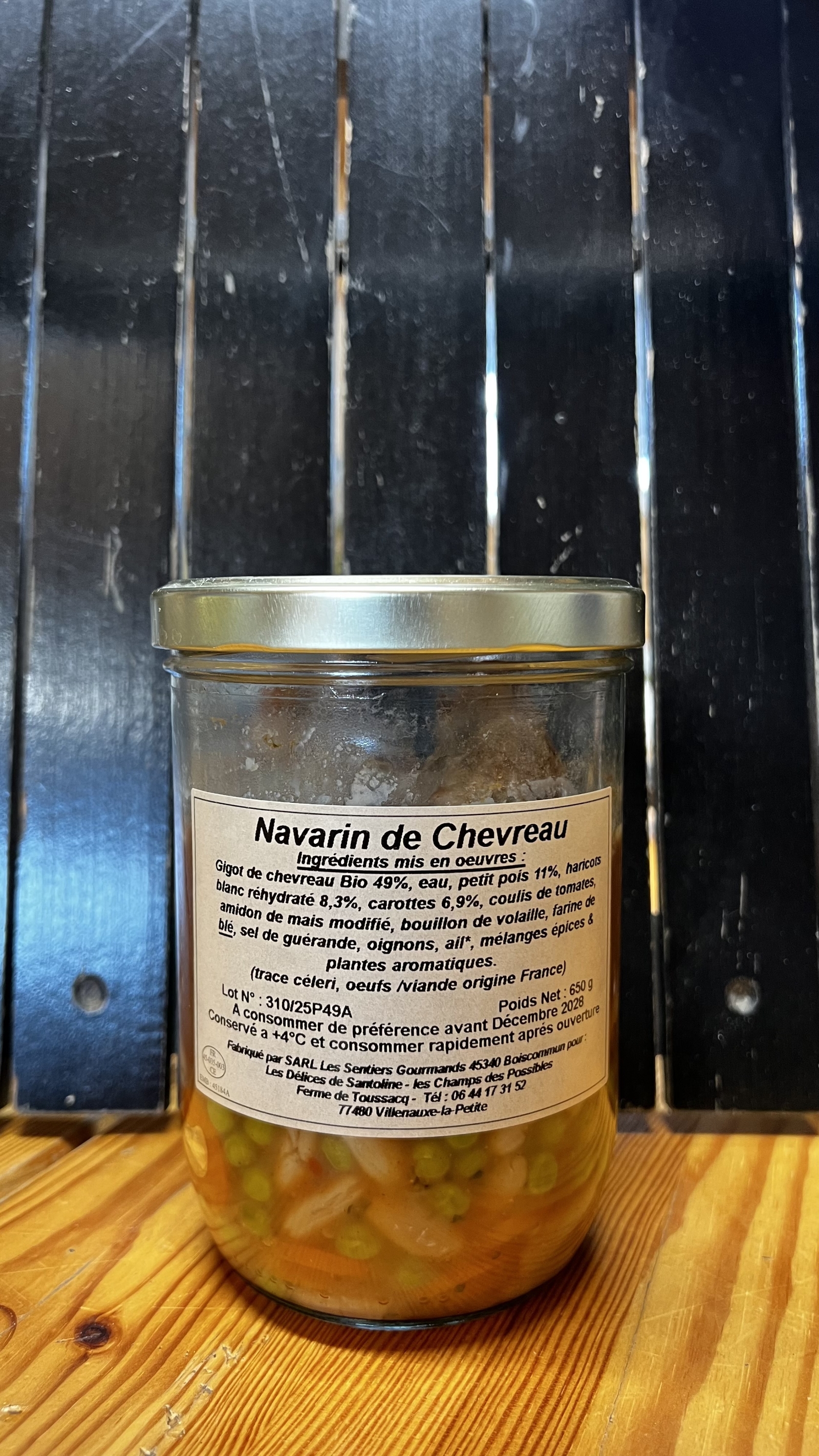 ![]() | Navarin de chevreau Plat cuisiné navarin au gigot de chevreau Conserve de 650g En savoir plus Conserve à base de viande de notre elevage.