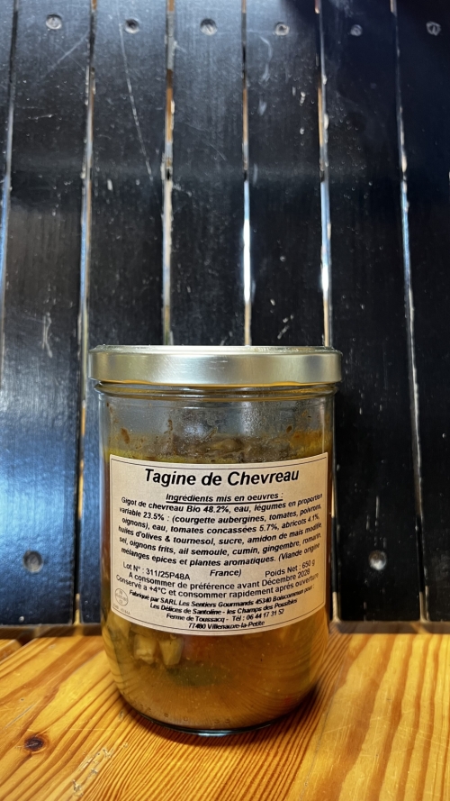 ![]() | Tajine de chevreau Plat cuisiné tajine au gigot de chevreau Conserve de 650g En savoir plus Conserve à base de viande de notre elevage.
