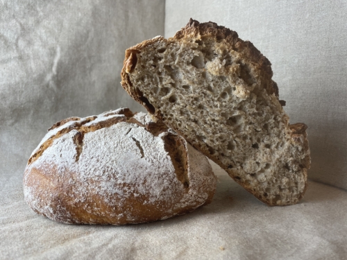 | T80 Graines de lin/tournesol 600gr composition: Farine de blé T80*, sel, levain de seigle* et eau, graines de lin et de tournesol.(*allergène) | 600 g | 4.50 € la pièce |