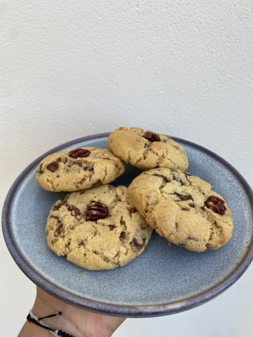 ![]()  | Cookie noix de pécan chocolat au lait Cookie pécan chocolat au lait 75 gr En savoir plus Ingrédients: beurre, sucre cassonnade, oeuf, farine, levure, pépites de chocolat au lait, noix de pécan  | 75 g | 2.50 € la pièce  |