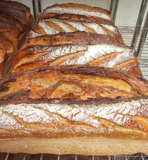 ![]() | Le grand Epeautre (Oberkulmer) Pain de grand épeautre. Farine 110 - Farine Pierre Tranchant/ St-Dolay En savoir plus Farine de Grand Epeautre, levain, eau filtrée, sel.