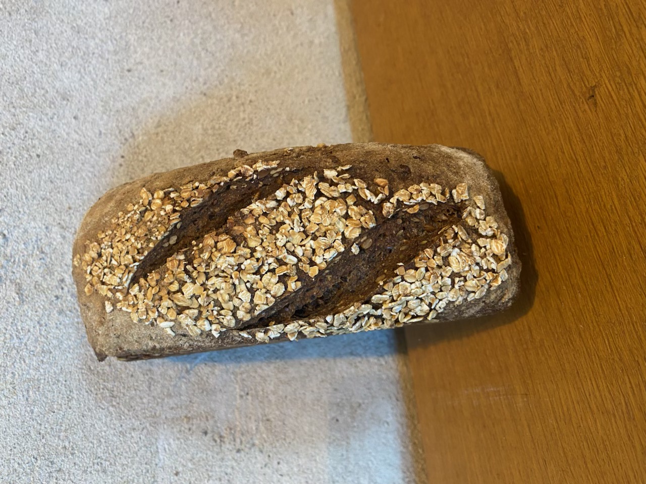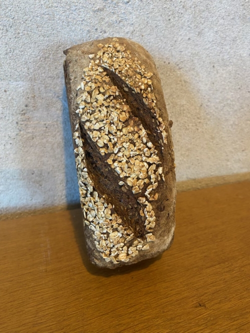 | Pain aux Graines 500gr Farine de froment T80*,eau, levain liquide froment* et seigle*, sel de noirmoutier, graine de courges*, millet*, tournesol*, lin doré*, lin brun* et chanvre*, Certifié par FR-BIO-09 *Agriculture biologique France | 500 g | 3.10 € la pièce |