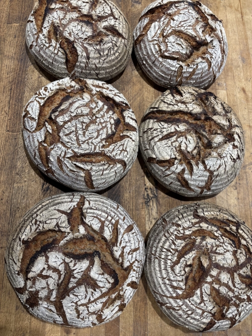 ![]() | MICHE au SEIGLE Pain miche au seigle En savoir plus farine de seigle 10% & T65 90% BIO - levain de blé - sel de guerande - eau | 910 g | 5.00 € la pièce |