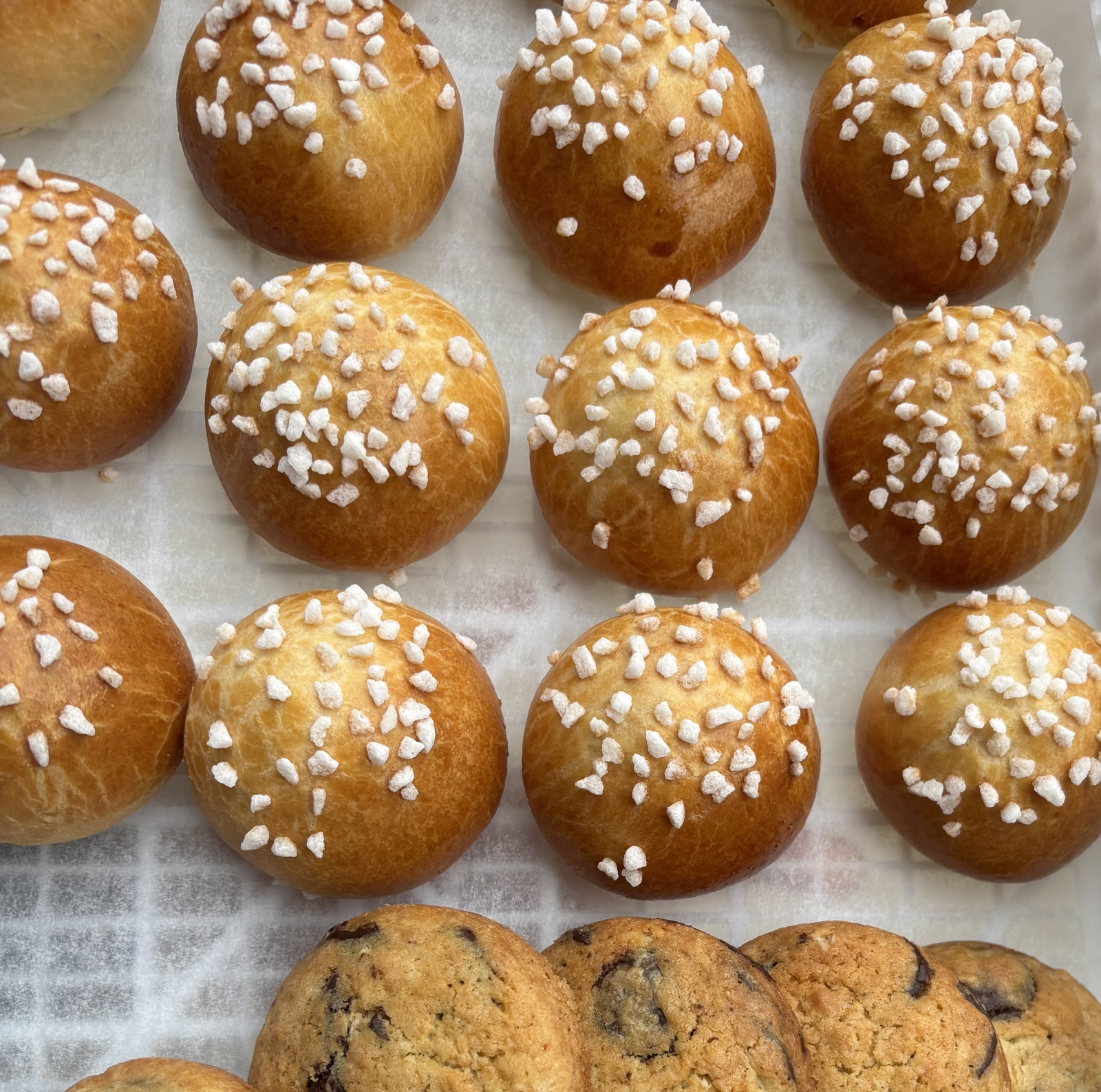 ![]() | Briochettes Briochettes En savoir plus Brioche BIO avec du levain de blé - farine T65 bio - beurre Bio - sucre de canne - une pointe de levure. | 60 g | 1.30 € la pièce |