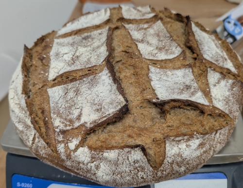 ![]() | Campagne Pain de campagne En savoir plus 80% T80 10% T170 seigle 10% T65 Levain de T80 sel de guérande eau | 750 g | 6.60 € la pièce |