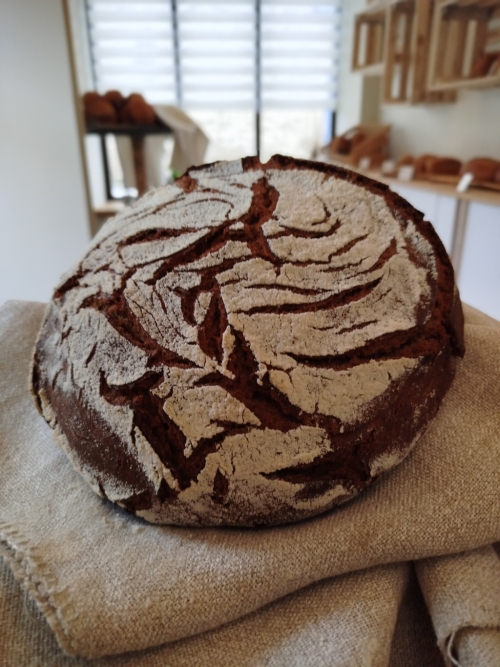 ![]() | Tourte de seigle Nouveau pour les fêtes! En savoir plus Un pain pur seigle, à partir de son levain de seigle. Goût frais et végétal du seigle et notes de miel proches du pain d'épices. Mie serrée et souple. Idéal pour accompagner vos fruits de mer. Un de mes pains préférés! | 935 g | 5.00 € la pièce |