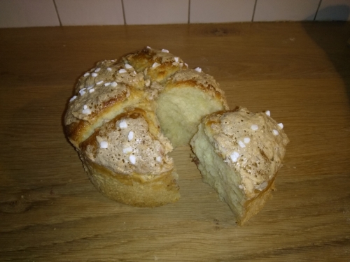 ![]() | Brioche roulée canelle Farine T65, Levain de blé, Oeuf, Beurre, Sucre, Eau, Canelle, Sel, Levure En savoir plus Une brioche à la mode Kanelbullar. Elle peut s'acheter à la part (la portion évolue entre 100 et 120g) ou entière (660g). Le blé est cultivé et transformé en farine par Franck Bruyère, paysan-meunier à Vallières-sur-Fier, au nord de Rumilly. Il fait parti de la filière Graines Bio des Savoie. | 110 g | 16.00 € le kg |