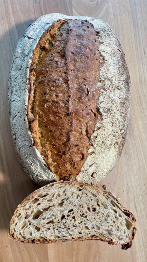 ![]() | Tournelin 600g Farine de Blé T80, Eau, Graines de lin brun, Graines de tournesol, Levain de Blé, Sel En savoir plus Le blé est cultivé et transformé en farine par Franck Bruyère, paysan-meunier à Vallières-sur-Fier, au nord de Rumilly. Il fait parti de la filière Graines Bio des Savoie. | 600 g | 7.00 € le kg |