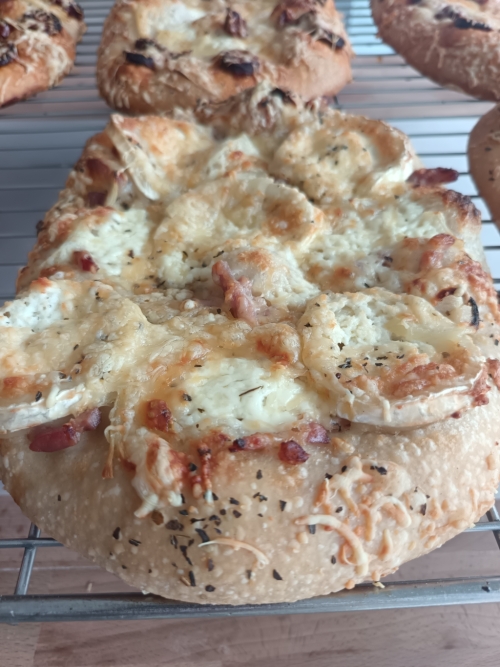 ![]() | Fougasse chèvre lardons Farine de blé T65*, levain de blé T65*, lait*, eau filtrée, huile d'olive, chèvre*, lardons, oignons, fromage rapé*, crème fraîche*, basilic, sel. En savoir plus *allergènes 1 fois par mois | 500 g | 6.00 € la pièce |