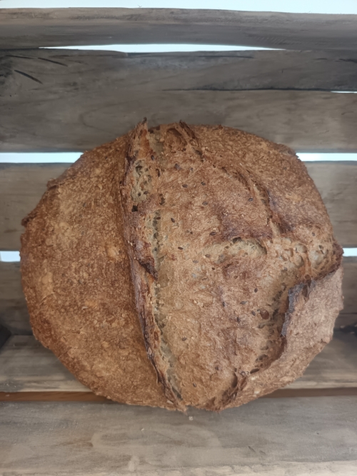 ![]() | Pain aux graines - moulé 1KG Farine de blé T80 sur meule de pierre*, mélange de graines (tournesol, sésame, courge, sarrasin, lin)*, eau filtrée, levain de seigle*, sel. En savoir plus *allergènes | 1000 g | 7.00 € la pièce |