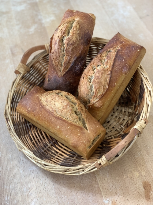 Pain, au levain, conçu à Ma Bonne Etoile, et tous les produits du fournil du vivant, hormis brioches pour les dimanches, cause fraîcheur.