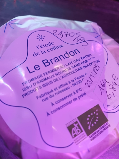![]()  | Le Brandon, bio, 21,70 €/kg Environ 300 g, Ferme l'étoile de la colline, Goviller  | 21.70 € le kg  |