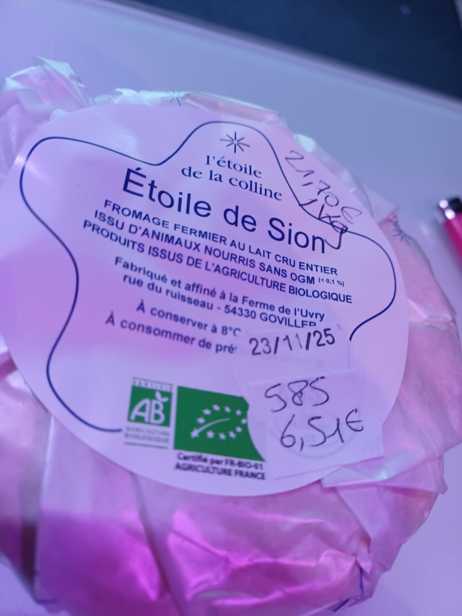 ![]()  | Etoile de Sion, bio, 21,70 €/kg Environ 300 g, Ferme l'étoile de la colline, Goviller  | 21.70 € le kg  |