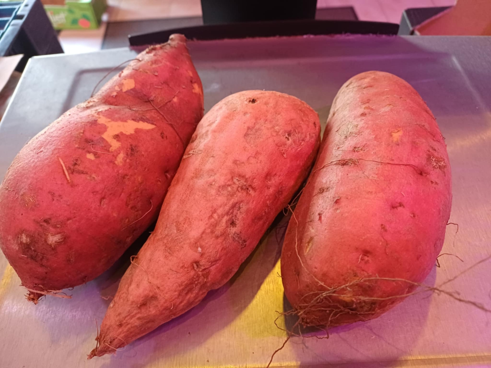 ![]()  | Patates douces bios, 3.50 €/kg Les enfants adorent, 1 kg équivalent de 3 moyennes  | 3.50 € le kg  |