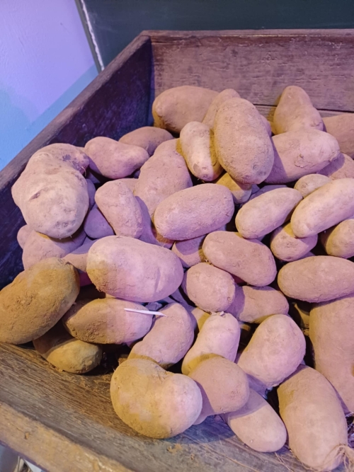 Pommes de terre bio Agria, du saintois, 2.30 €/kg Pour au four, purée, potages, frites  | 2.30 € le kg  | |