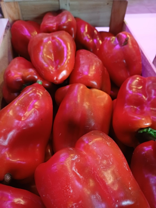 ![]()  | Poivrons rouges bios, 4.80 €/kg 500g équivalent à 5 petits ou 2 gros  | 4.80 € le kg  |