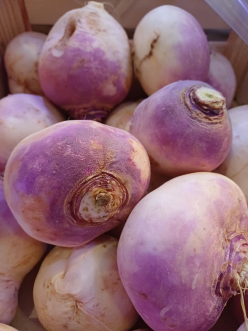 ![]()  | Navets bios, 2.80 €/kg  | 2.80 € le kg  |