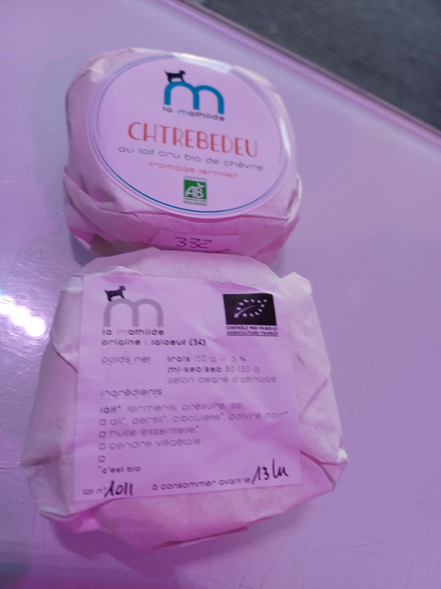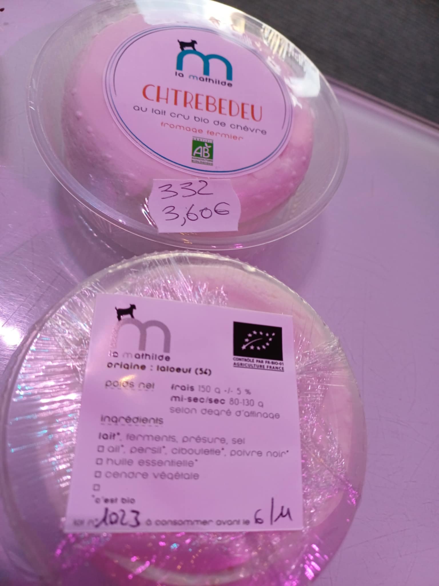![]()  | Le Chtrebedeu, frais, bio, 150 g +ou-5% Fromage de chèvre frais, au lait cru, local, Laloeuf, Ferme La Mathilde, la belle des champs..  | 3.60 € la pièce  |