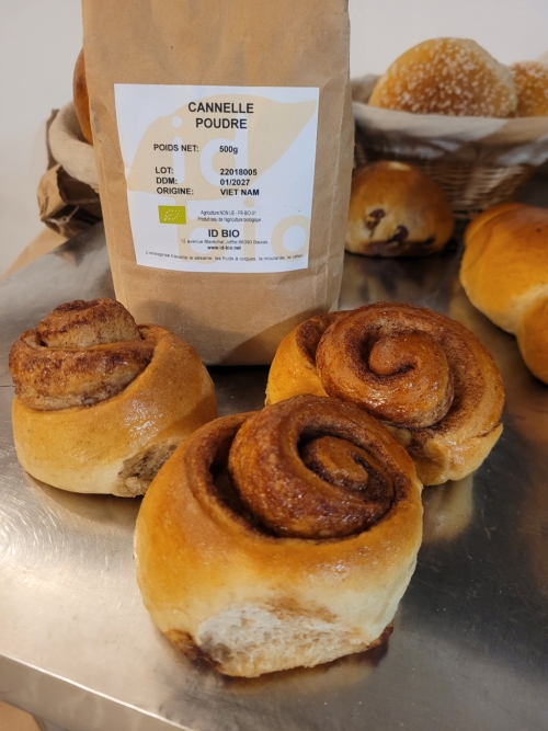 ![]() | Roulé à la cannelle En savoir plus Ingrédients : farine de blé, lait, beurre, œufs, sucre, cannelle, levain naturel, levure, sel | 90 g | 2.10 € la pièce |