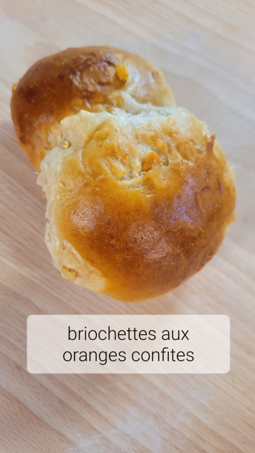 ![]() | Briochette aux oranges confites En savoir plus Ingrédients : farine de blé, lait, beurre, oranges confites, œufs, sucre, levure, levain naturel, sel | 90 g | 1.70 € la pièce |